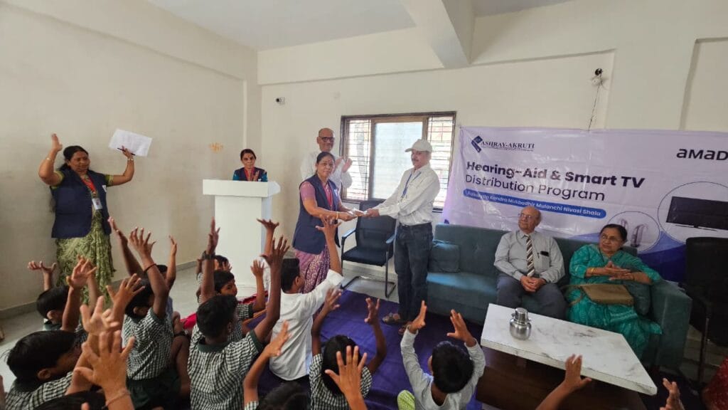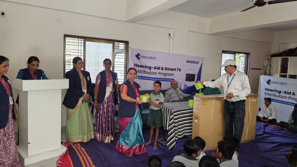 On 11 March 2026, Group Hearing Aids were distributed to 24 students of our Residential School for the Hearing Impaired. The distribution took place in the presence of Mr. Anant Salunke, representative of Ashray-Akruti.